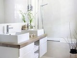 1.悬浮浴室柜 它较大的优点就是没有卫生死角,好打扫。其次,它还能节省空间,悬空的部分可以用来放一些脸盆,脚凳等杂物。 一般悬空高度是75-90cm左右,具体要根据家庭成员的习惯来决定。 2.悬浮马桶 悬浮马桶听起来很高大上,其实就是指的嵌入式墙排马桶。与传统地排马桶相比,壁挂式马桶的水箱隐藏入墙体