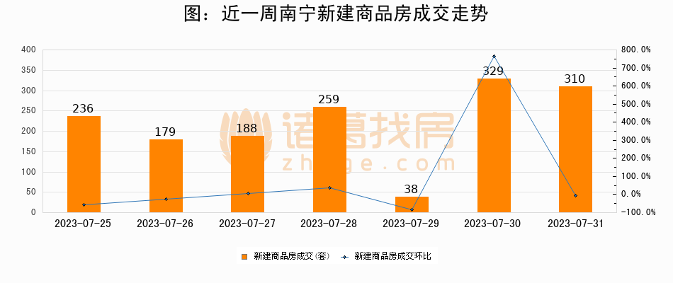 【南宁成交日报】07月31日新房成交310套;涨价房源9套