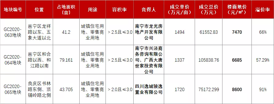 | 7月29日南宁土拍成交情况