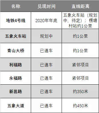 项目南侧有地铁4号线,2020年年底就开通。楞塘站距离项目1公里左右,而地铁4号线正在规划中的五象火车站地铁口,目前还在选点中,但预计离项目更近。
