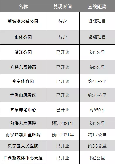 | 项目周边医院、公园等及兑现时间