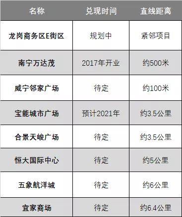 | 项目周边商业配套及兑现时间