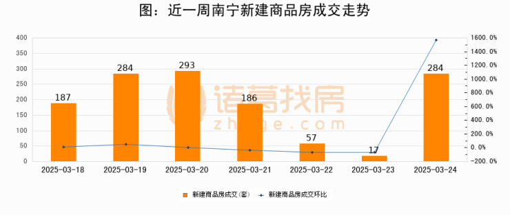 【南宁成交日报】03月24日新房成交284套、二手房134套;涨价房源40套