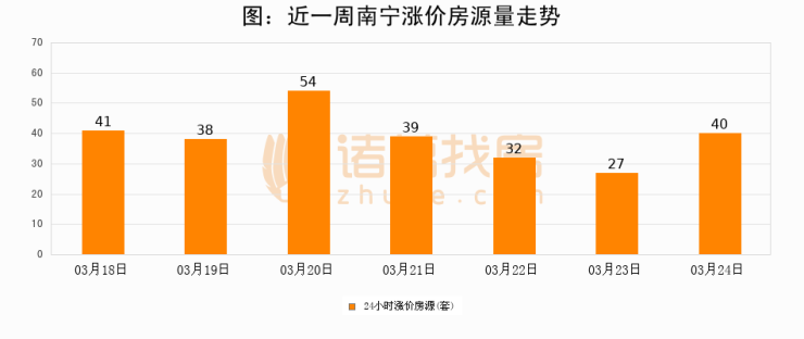 根据诸葛找房数据显示,南宁24小时涨价房源量为40套,较03月23日增加13套,环比上涨48.1%。与此同时,涨价房源占比小幅扩大,业主信心有所提升。