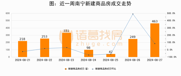 【南宁成交日报】08月27日新房成交463套、二手房145套;涨价房源34套