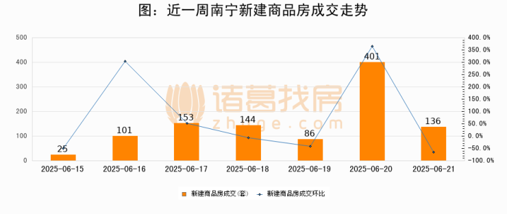 【南宁成交日报】06月21日新房成交136套、二手房22套;涨价房源37套