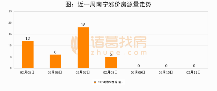 根据诸葛找房数据显示,南宁24小时涨价房源量为0套,较02月10日持平。