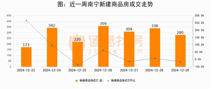 【南宁成交日报】12月29日新房成交280套、二手房40套;涨价房源23套