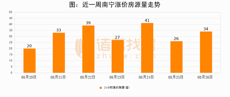 根据诸葛找房数据显示,南宁24小时涨价房源量为34套,较08月25日增加8套,环比上涨30.8%。与此同时,涨价房源占比小幅扩大,业主信心有所提升。