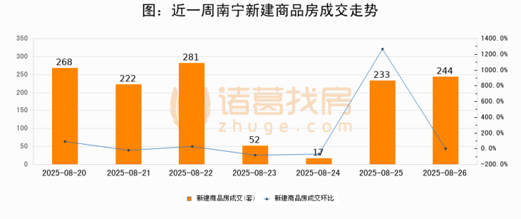 【南宁成交日报】08月26日新房成交244套、二手房193套;涨价房源34套