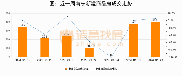 【南宁成交日报】04月25日新房成交400套、二手房165套;涨价房源10套