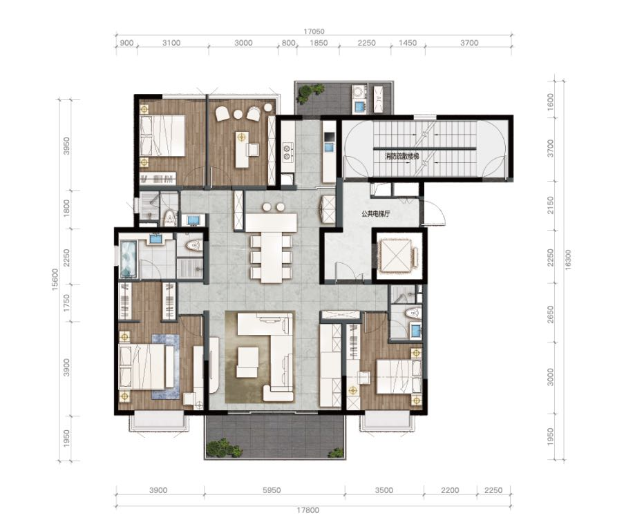 作为金域中央升级版,万科紫台只规划了4栋大平层,39套联排。大平层只有一个户型,175㎡的四房。