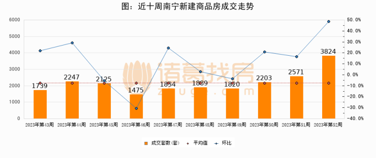 【南宁成交周报】第52周新房成交3824套,二手房232套,涨价房源22套