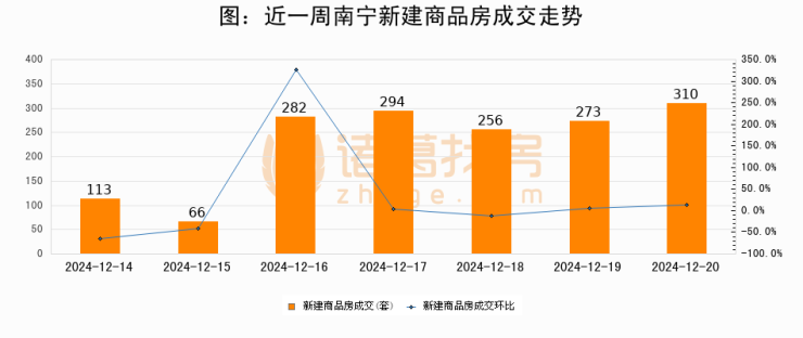 【南宁成交日报】12月20日新房成交310套、二手房16套;涨价房源32套