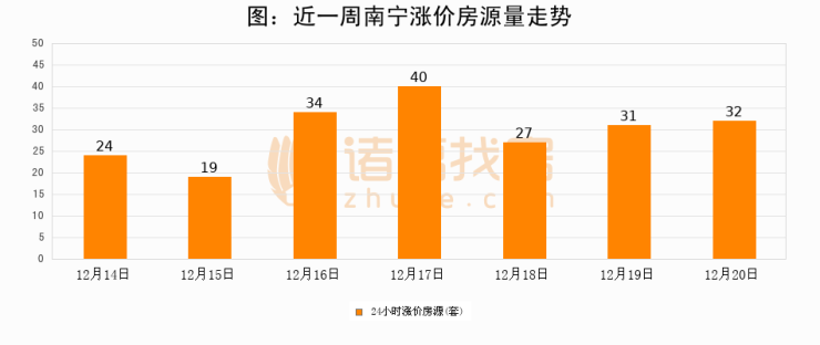 根据诸葛找房数据显示,南宁24小时涨价房源量为32套,较12月19日增加1套,环比上涨3.2%。与此同时,涨价房源占比小幅扩大,业主信心有所提升。