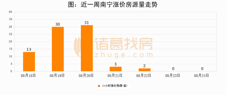 根据诸葛找房数据显示,南宁24小时涨价房源量为0套,较08月23日持平。