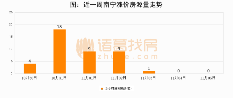 根据诸葛找房数据显示,南宁24小时涨价房源量为0套,较11月04日持平。