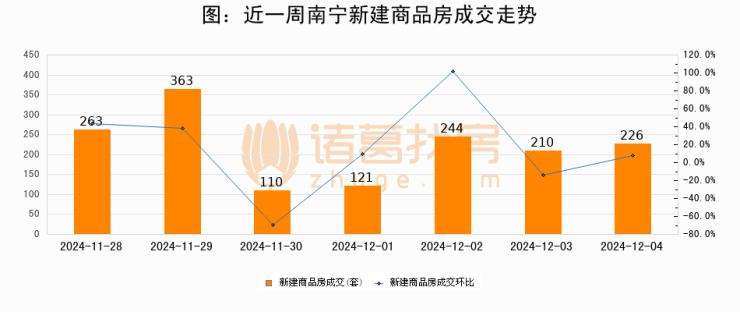 【南宁成交日报】12月04日新房成交226套、二手房227套;涨价房源5套
