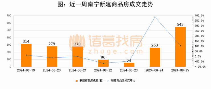 【南宁成交日报】06月25日新房成交545套、二手房146套;涨价房源38套