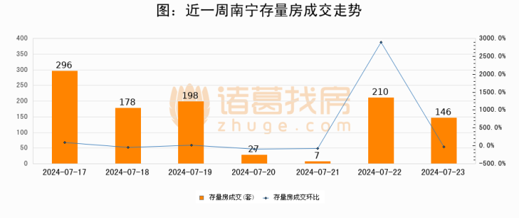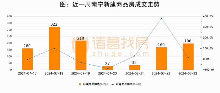【南宁成交日报】07月23日新房成交196套、二手房146套;涨价房源22套