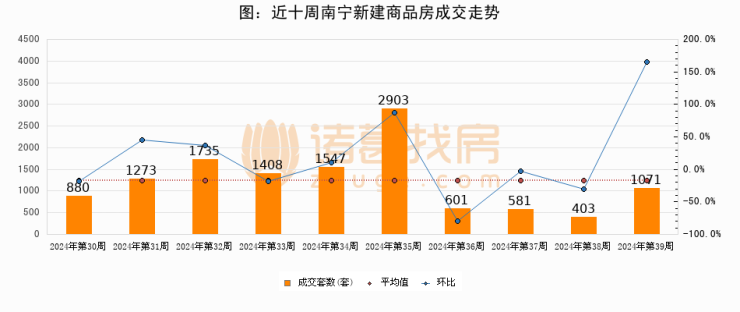 【南宁成交周报】第39周新房成交1071套,二手房1135套,涨价房源206套