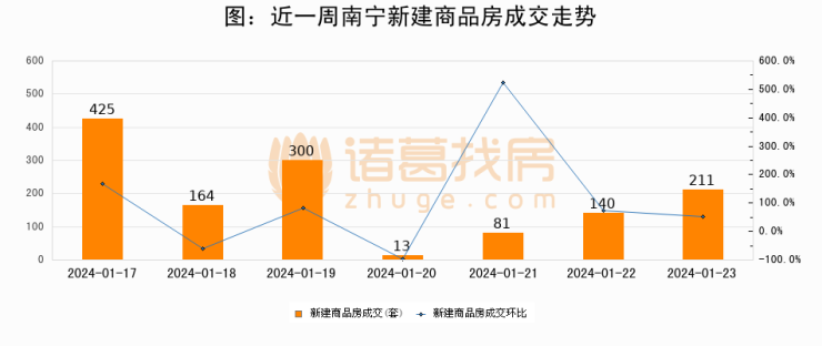 【南宁成交日报】01月23日新房成交211套、二手房75套;涨价房源42套