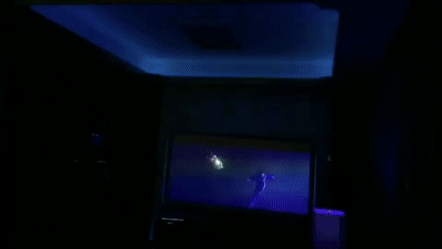 饭后,与爱人慵懒地坐在沙发上,一键主机切换“影院模式”:灯光自动变暗,电视、DVD、音响设备打开,老电影在空闲的夜晚缓缓上演。