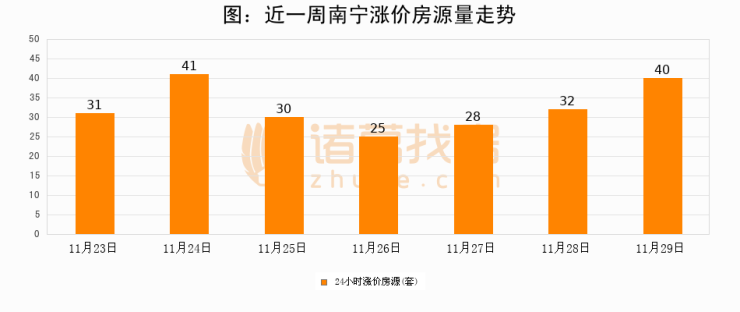 根据诸葛找房数据显示,南宁24小时涨价房源量为40套,较11月28日增加8套,环比上涨25%。与此同时,涨价房源占比小幅扩大,业主信心有所提升。