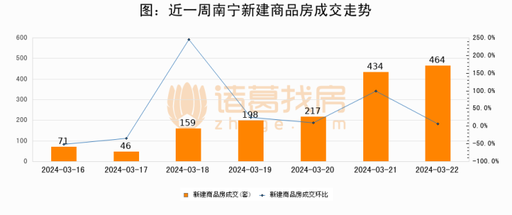 【南宁成交日报】03月22日新房成交464套、二手房141套;涨价房源38套