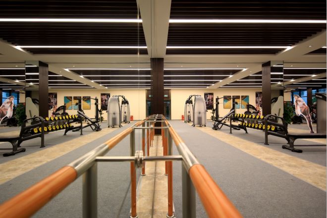 让人瞬间燃爆的动感单车室,极具现代感的设计,知名品牌的动感单车排布整齐划一,酷炫的灯光效果搭配音响设备,带当灯光缤纷闪烁,劲爆的音乐节奏响起,如果你正好精力充沛,那么特别会兴奋地骑上两把。