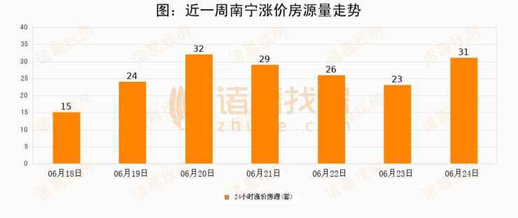 根据诸葛找房数据显示,南宁24小时涨价房源量为31套,较06月23日增加8套,环比上涨34.8%。与此同时,涨价房源占比小幅扩大,业主信心有所提升。