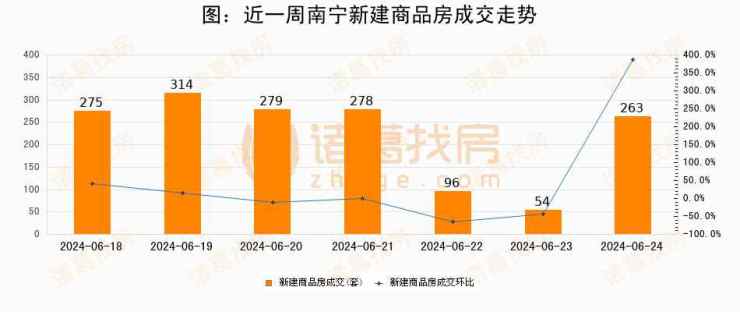 【南宁成交日报】06月24日新房成交263套、二手房216套;涨价房源31套