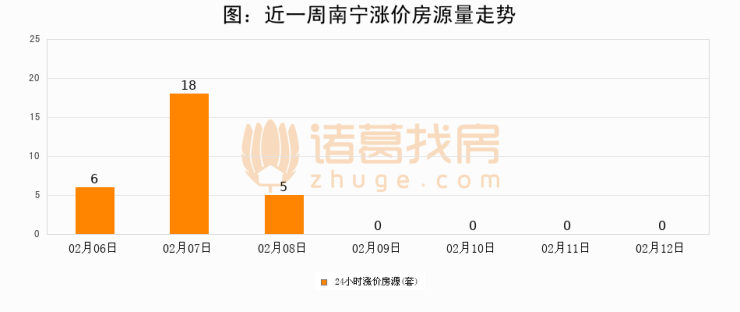 根据诸葛找房数据显示,南宁24小时涨价房源量为0套,较02月11日持平。