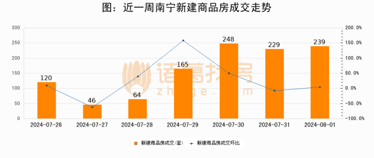 【南宁成交日报】08月01日新房成交239套、二手房146套;涨价房源50套
