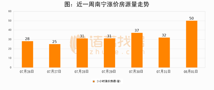 根据诸葛找房数据显示,南宁24小时涨价房源量为50套,较07月31日增加18套,环比上涨56.2%。与此同时,涨价房源占比小幅扩大,业主信心有所提升。