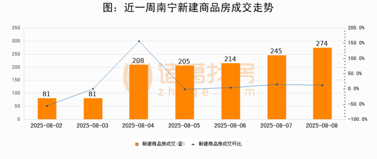 【南宁成交日报】08月08日新房成交274套、二手房182套;涨价房源41套