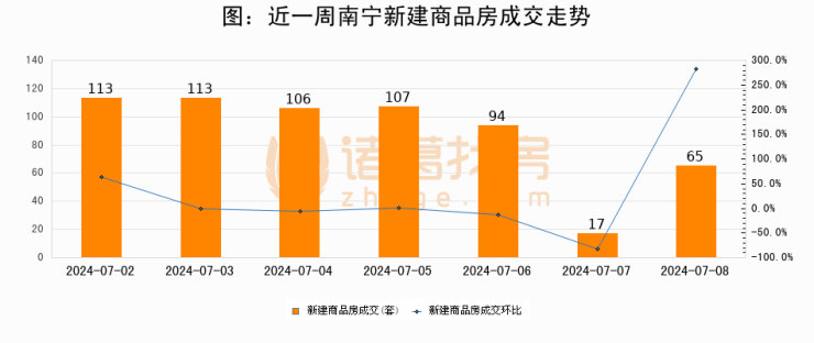 【南宁成交日报】07月08日新房成交65套、二手房207套;涨价房源32套