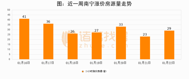 根据诸葛找房数据显示,南宁24小时涨价房源量为29套,较01月21日增加6套,环比上涨26.1%。与此同时,涨价房源占比小幅扩大,业主信心有所提升。