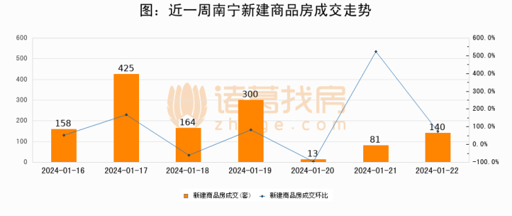 【南宁成交日报】01月22日新房成交140套、二手房60套;涨价房源29套