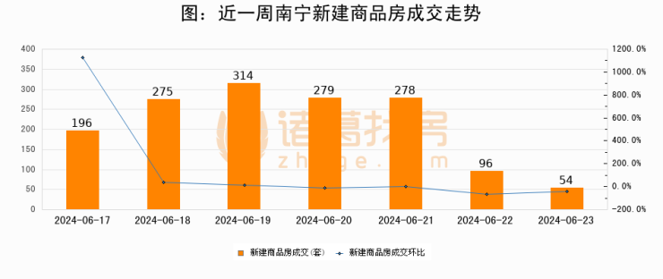 【南宁成交日报】06月23日新房成交54套、二手房8套;涨价房源23套