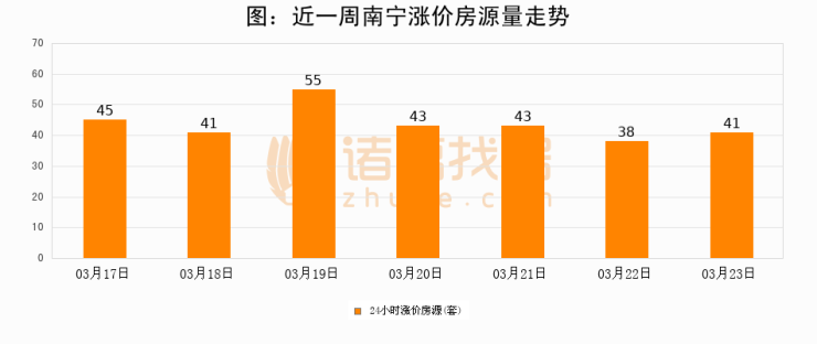 根据诸葛找房数据显示,南宁24小时涨价房源量为41套,较03月22日增加3套,环比上涨7.9%。与此同时,涨价房源占比小幅扩大,业主信心有所提升。