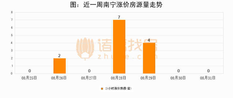 根据诸葛找房数据显示,南宁24小时涨价房源量为0套,较08月30日持平。