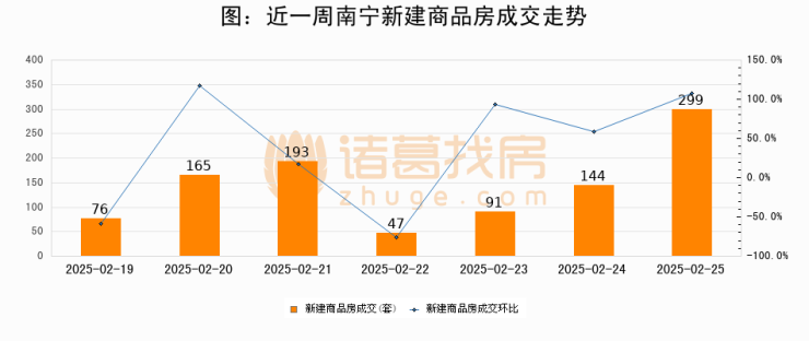 【南宁成交日报】02月25日新房成交299套、二手房178套;涨价房源27套