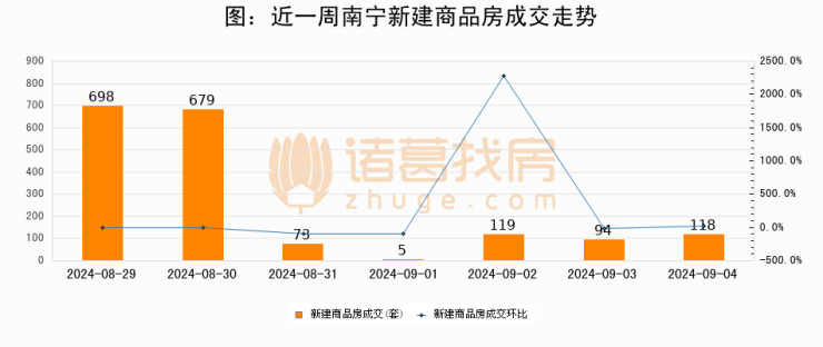 【南宁成交日报】09月04日新房成交118套、二手房110套;涨价房源27套