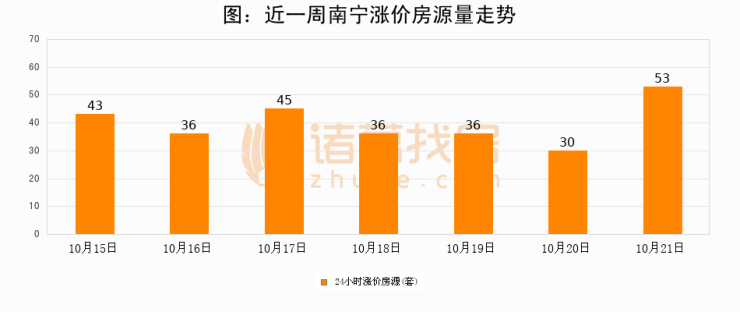 根据诸葛找房数据显示,南宁24小时涨价房源量为53套,较10月20日增加23套,环比上涨76.7%。与此同时,涨价房源占比小幅扩大,业主信心有所提升。