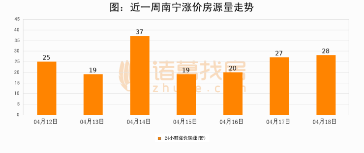 根据诸葛找房数据显示,南宁24小时涨价房源量为28套,较04月17日增加1套,环比上涨3.7%。与此同时,涨价房源占比小幅扩大,业主信心有所提升。