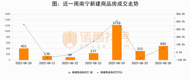 【南宁成交日报】06月26日新房成交490套、二手房218套;涨价房源29套