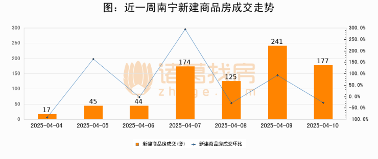 【南宁成交日报】04月10日新房成交177套、二手房100套;涨价房源43套
