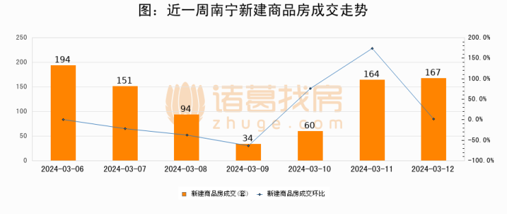 【南宁成交日报】03月12日新房成交167套、二手房107套;涨价房源424套
