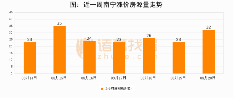 根据诸葛找房数据显示,南宁24小时涨价房源量为32套,较08月19日增加9套,环比上涨39.1%。与此同时,涨价房源占比小幅扩大,业主信心有所提升。